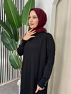 Zarafeti ve konforu buluşturan Düğmeli Triko Elbise - Siyah , modern tesettür anlayışını yansıtan sofistike bir tasarımdır. Yumuşak dokulu merserize kumaşıyla soğuk havalarda sıcaklık ve konfor sunarken, zarif duruşuyla gün boyu şıklığını korur. Işıltılı taş detaylarıyla hareket kazanan yakası, elbisenin sade çizgilerine zarif bir dokunuş ekler. Hem günlük kullanımlar hem de özel davetler için ideal bir seçimdir 🍂