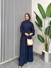 Pamuklu Düğmeli Elbise - Lacivert